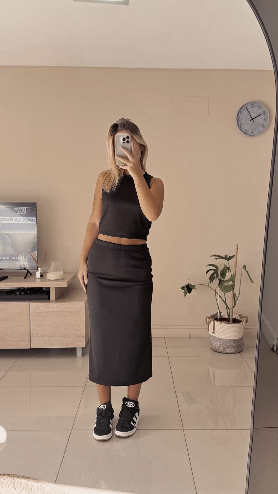 IMPORTANTE: en la primera foto la musculosa esta tal cual viene, en las demas esta enganchada y acomodada para que se vea mas larga y mas ajustada, adaptala como mas te guste!